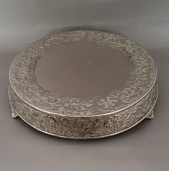 21" Nickel Plated Round Embossed Metal Cake Stand| 21" Dia x 5" H | Item No. 79719