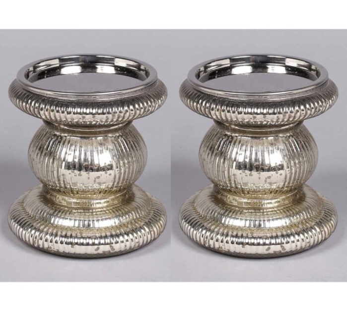 Silver mercury glass pillar candle holder for 3" or 4" pillar candles Set of 2